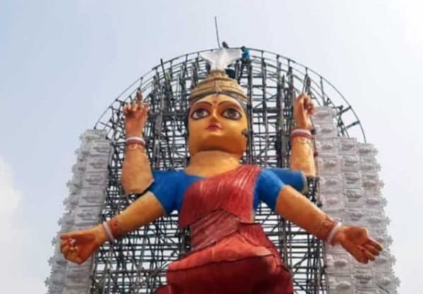 চন্দননগর মানেই যেন জগদ্ধাত্রী পুজো। কলকাতার দুর্গা, বারাসাতের কালীপুজোর থেকে কোনো অংশে কম যায় না চন্দননগরের জগদ্ধাত্রী পুজো। এবার সবথেকে বড় জগদ্ধাত্রী প্রতিমা তৈরি করে চমক দিয়েছে চন্দননগরের অন্যতম ক্লাব কানাইলাল পল্লী। পুজোর চারদিন চন্দননগরে দর্শনার্থীদের ভিড়ে তিল ধারণের জায়গা থাকে না৷ কানাইলাল পল্লীর পুজো এবার ৫২ বছরে পদার্পণ করেছে। থিমের ভিড়ে অন্য রকম একটু চমক দিতে চাইছিলেন পুজো উদ্যোক্তারা। সে কথা মাথায় রেখেই এবার সবথেকে বড় জগদ্ধাত্রী প্রতিমা তৈরি করেছে এই ক্লাব। সাধারণত চন্দননগরের জগদ্ধাত্রী প্রতিমার উচ্চতা হয়ে থাকে ২৬ ফুটের মধ্যে। কিন্তু সেই সীমা এবার ছাড়িয়ে গিয়েছে কানাইলাল পল্লী। জানা যায়, তাদের প্রতিমার উচ্চতা ৭৫ ফুট।