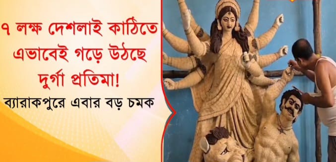 দেশলাই কাঠির বারুদ দিয়ে দেবীর মাথার চুল, গয়না তৈরি হয়েছে। শুধু মা দুর্গা নন, এভাবে মহিষাসুর, সিংহ, এমনকী সাপও বানিয়েছেন তিনি। তিন মাস ধরে তৈরি হচ্ছে এই প্রতিমা। কমিটির তরফে জানানো হয়েছে, ব্যারাকপুর সর্বপল্লী এলাকার স্থানীয় বাসিন্দা বিভাশ সরকারের বাল্যবন্ধু জ্যোতির্ময় বনিককে দিয়ে দীর্ঘদিনের প্রচেষ্টায় এই প্রতিমা গড়ার জন্য রাজি করানো হয়েছে। ইতিমধ্যেই এলাকায় মানুষের মধ্যে ব্যাপক উৎসাহ দেখা দিয়েছে দেশলাইয়ের প্রতিমা ঘিরে। অন্যদিকে শিল্পী জ্যোতির্ময় বনিক জানান, ছোটবেলা থেকেই তিনি প্রতিমা তৈরির কাজে যুক্ত। এর আগেও দেশলাই কাঠি দিয়ে প্রতিমা তৈরি করে উত্তরবঙ্গে সাড়া ফেলে দিয়ে ছিলেন।