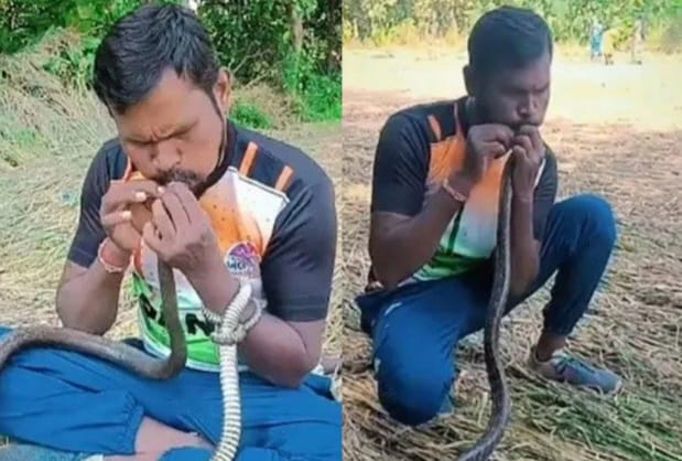 দুঃসাহসিক কীর্তি বোধহয় একেই বলে। মৃতপ্রায় সাপের প্রাণ বাঁচাতে জীবন বাজি রাখলেন যুবক। সাপের মুখে মুখ দিয়ে দিলেন জীবনদায়ী সিপিআর। ভয়ংকর সেই ভিডিও ভাইরাল হয়েছে সোশাল মিডিয়ায়। অসম সাহসী যুবকের কীর্তি চাক্ষুস করে রীতিমতো বিস্মিত নেটিজেনরা। জানা গিয়েছে, এই ঘটনা গুজরাটের বলসাড এলাকার। স্থানীয় সূত্রে খবর, চলার সময় বিদ্যুৎস্পৃষ্ট হয়ে নিচে পড়ে গিয়েছিল সাপটি। খবর পেয়ে ঘটনাস্থলে আসেন স্থানীয় উদ্ধারকারী। মৃতপায় সাপটিকে বাঁচাতে উঠে পড়ে লাগেন তিনি। ভাইরাল ভিডিওতে দেখা যাচ্ছে, সাপটির মাথা মুখের ভেতর ঢুকিয়ে সজোরে ফুঁ দিতে থাকেন যুবক।