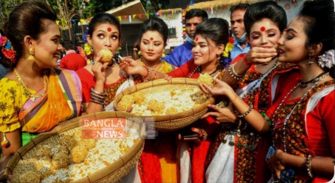 নতুন চালের ভাত এবং নানা ধরনের পিঠাপুলির আয়োজন করা হয়।