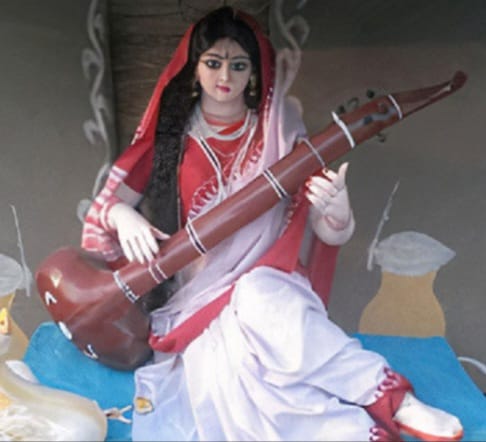 • প্রতীকী তাৎপর্য: সরস্বতীকে বীণা হাতে এবং বইয়ের সাথে চিত্রিত করা হয়, যা জ্ঞান ও সঙ্গীতের প্রতীক। এই দিনটিতে অনেক ছাত্রছাত্রী তাদের বইপত্র দেবীর সামনে রেখে নতুন করে পড়াশোনা শুরু করার প্রতিজ্ঞা করে।