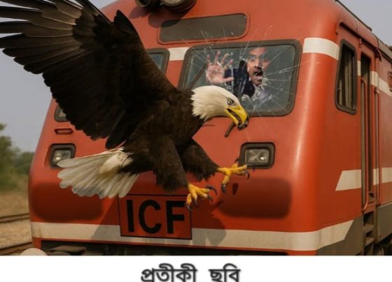 ঈগলের ধাক্কায় ভেঙে গেলো ট্রেনের কাচ – আহত ড্রাইভার
