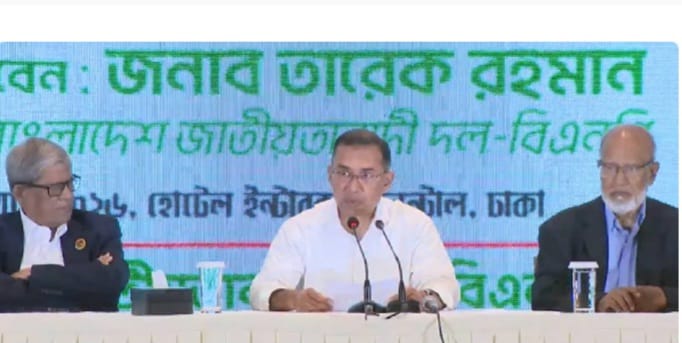বিএনপির বিপুল জয়ের পরে বিএনপির পক্ষ থেকে দেশি বিদেশি সাংবাদিকদের সঙ্গে প্রথম সাক্ষাৎ করলেন ভাবি মুখ্যমন্ত্রী তারেক রহমান। সেখানে তিনি বহু প্রশ্নের উত্তর দেন। স্পষ্ট বুঝিয়ে দেন, কোনো জঙ্গিপনা নয়, বাংলাদেশের উন্নতি হবে তাদের একমাত্র লক্ষ্য। শনিবার সাংবাদিক সম্মেলনে তিনি স্পষ্ট করে দিলেন, কোনওরকম হিংসা, বেআইনি কর্মকাণ্ড বরদাস্ত করবে না নতুন সরকার। একইসঙ্গে বিদেশনীতি নিয়ে নতুন সরকারের অবস্থান কী হবে, এদিন স্পষ্ট করে দিলেন তারেক রহমান। নির্বাচনে বিএনপির জয়ের পর এদিন ঢাকার একটি হোটেলে সাংবাদিক সম্মেলন করেন তারেক। সেখানে দেশ-বিদেশের সাংবাদিকরা উপস্থিত ছিলেন। আর সেই সাংবাদিক বৈঠকেই নতুন সরকারের লক্ষ্য খোলসা করে দিলেন বিএনপি চেয়ারম্যান। এদিন তিনি বলেন, “প্রিয় দেশবাসী, এই বিজয় বাংলাদেশের। এই বিজয় গণতন্ত্রের। এই বিজয় গণতন্ত্রকামী জনগণের। আজ থেকে আমরা সবাই স্বাধীন। সকল প্রতিবন্ধকতার মোকাবিলা করে আমরা দেশের গণতন্ত্রের পথ সুগম করেছি। ফ্যাসিবাদের রেখে যাওয়া ভঙ্গুর অর্থনীতি, অকার্যকর করে দেওয়া সাংবিধানিক প্রতিষ্ঠান এবং দুর্বল আইনশৃঙ্খলা পরিস্থিতির মধ্যে দিয়ে আমরা যাত্রা শুরু করতে চলেছি।” তিনি স্পষ্ট করেন ফ্যাসিবাদ নয়, গণতন্ত্রপ্রতিষ্ঠা তাদের একমাত্র লক্ষ্য।
