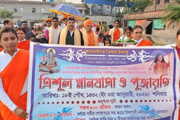 ভারত সেবাশ্রম সংঘের প্রতিষ্ঠাতা আচার্য স্বামী প্রণবানন্দজী মহারাজ শুরু করেন এই ‘ত্রিশুল পূর্ণিমা’। পৌষ পূর্ণিমার অপর নাম ত্রিশূল পূর্ণিমা। উত্তর ২৪ পরগনার সন্দেশখালী ব্লকের কানমারী আজ এক আধ্যাত্মিক মিলনক্ষেত্রে পরিণত হয়েছিল। ভারত সেবাশ্রম সংঘের কানমারী গ্রামীণ সেবাকেন্দ্রে অত্যন্ত ভক্তি ও শ্রদ্ধার সঙ্গে পালিত হল ‘ত্রিশূল পূর্ণিমা’। পৌষ পূর্ণিমার এই পুণ্য তিথিতে বিশ্বমানব কল্যাণের লক্ষ্যেই প্রতি বছর সংঘ এই বিশেষ উৎসবের আয়োজন করে। এদিন ভোরে শঙ্খধ্বনি ও জয়ধ্বনি দিয়ে অনুষ্ঠানের সূচনা হয়। একটি বর্ণাঢ্য শোভাযাত্রা মন্দির প্রাঙ্গণ থেকে শুরু হয়ে বিদ্যাধরী নদীর ঘাটে পৌঁছায়। সেখানে ভক্ত ও শিষ্যদের উপস্থিতিতে শাস্ত্রীয় রীতি মেনে ‘ত্রিশূল স্নান’ সম্পন্ন হয়।