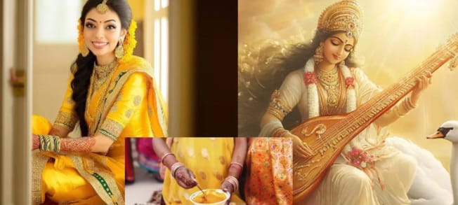 মাঘ পঞ্চমীতে হয় সরস্বতী পুজো – যখন শুভ সূচনা হয়ে যায় বসন্ত কালের। প্রকৃতির রং বলে দেয় যে দুয়ারে বসন্ত উপস্থিত। সরস্বতী পুজো এলেই চারপাশে বিশেষ ভাবে চোখে পড়ে একটাই রং হলুদ। গায়ে হলুদ মাখা থেকে শুরু করে হলুদ শাড়ি বা পোশাক, এই রঙ যেন পুজোর অবিচ্ছেদ্য অঙ্গ। কিন্তু এই রীতিগুলো কি শুধুই সাজগোজের অংশ, নাকি এর পেছনে রয়েছে ধর্মীয়, ঋতুভিত্তিক ও সামাজিক ব্যাখ্যা? সরস্বতী পুজো পালিত হয় বসন্ত পঞ্চমী তিথিতে, যা বসন্ত ঋতুর সূচনা করে। বসন্ত মানেই প্রকৃতির রঙ বদল—সরষে ফুল, গাঁদা, পলাশ, নতুন ফসল—সবকিছুতেই প্রাধান্য পায় হলুদ রঙ। এই কারণেই ভারতীয় সংস্কৃতিতে বসন্তকে “হলুদের ঋতু” বলা হয়। বসন্ত পঞ্চমীতে হলুদ রঙ উদ্যম,পজিটিভ আশা ও নতুন সূচনার প্রতীক হিসেবে ধরা হয়।